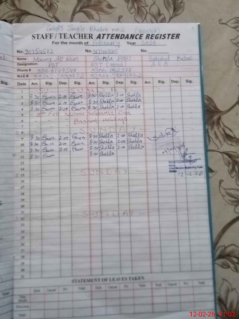 | Name: Sh**** Bi**** Designation: (School Headmaster's/Headmistress's) HEADMASTER Phone/Cell Number: 03**** |