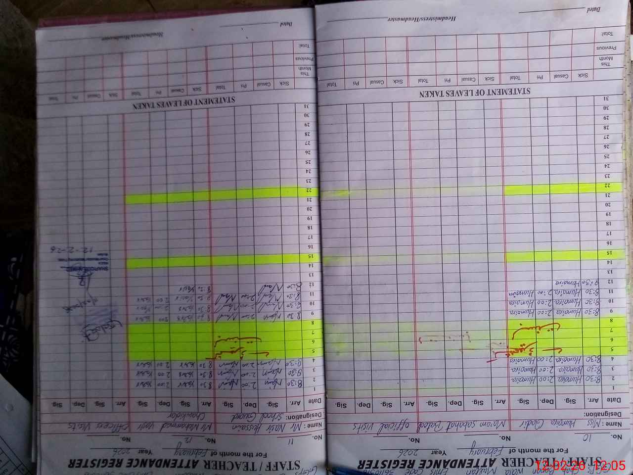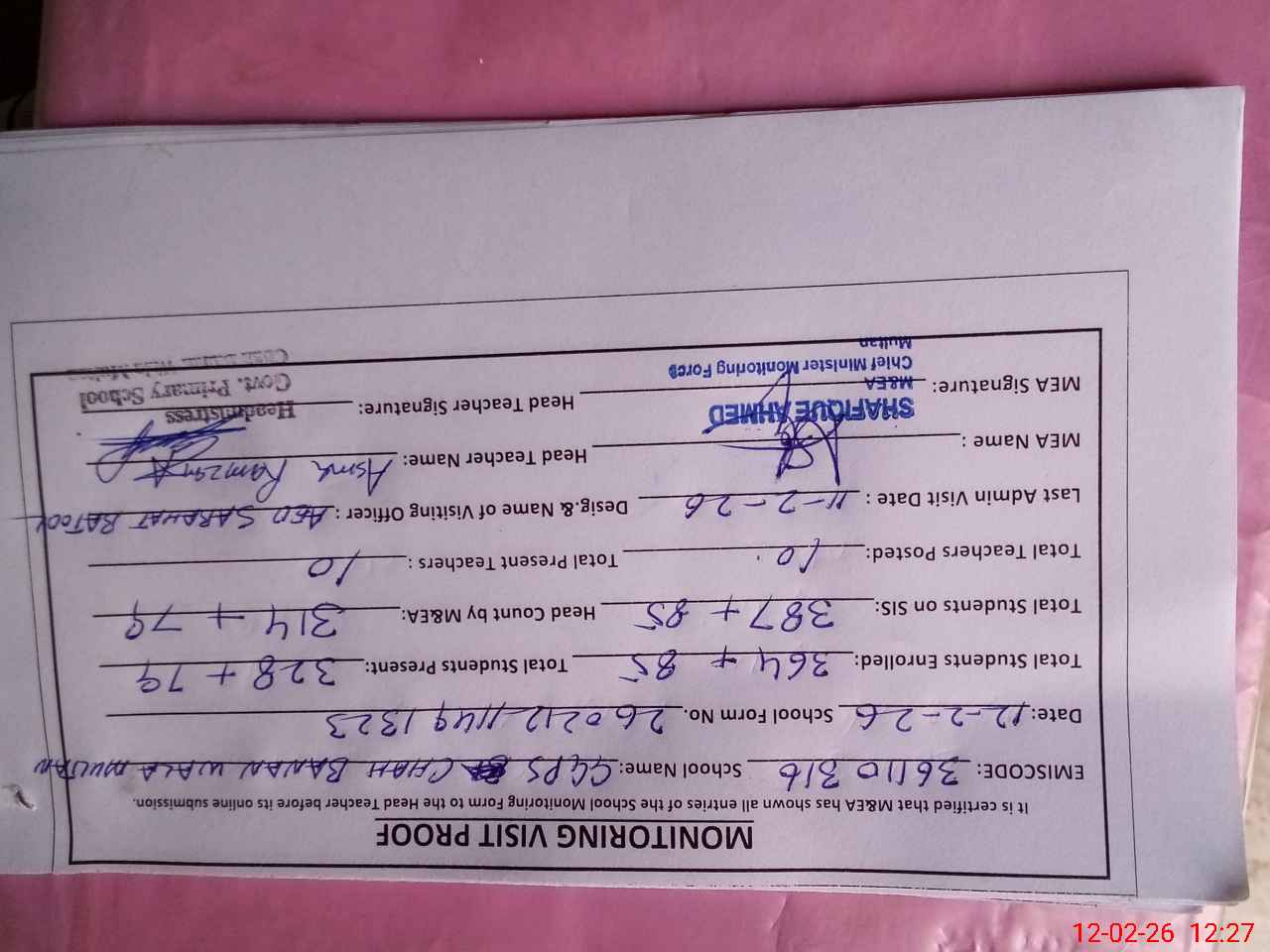 | Attendance Register | Head Teacher | MEA with School | Visit Proof |