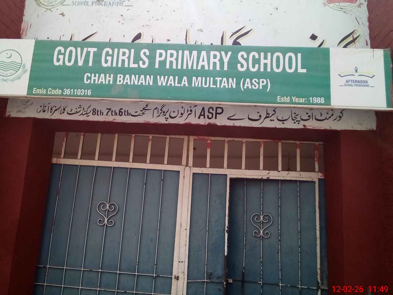 | EMIS Code: 36110316 | Name of School: GGPS CHAH BANAN WALA MULTAN | |||