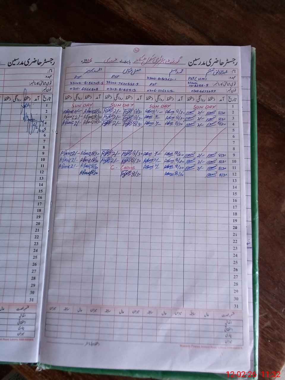 | Name: MAS**** Designation: (School Headmaster's/Headmistress's) PST Phone/Cell Number: 03**** |