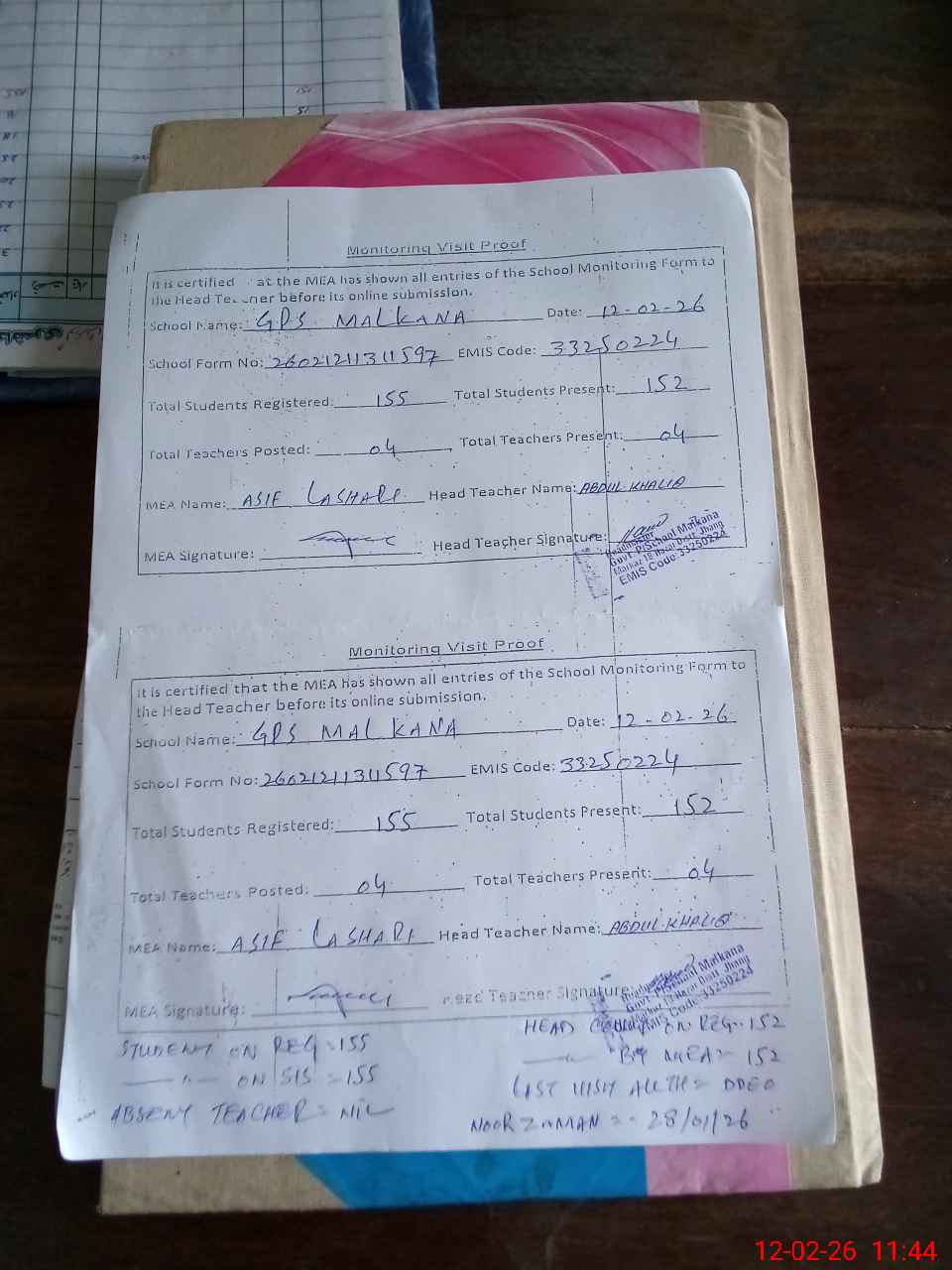 | EMIS Code: 33250224 | Name of School: GPS MALKANA | |||