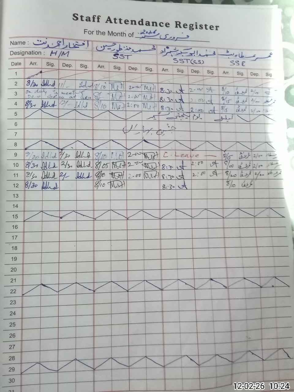 | Remarks (Use Separate Page if Required): Javed Iqbal Tabish SST 3410457301893 absent since 01-10-2024 | |||||
