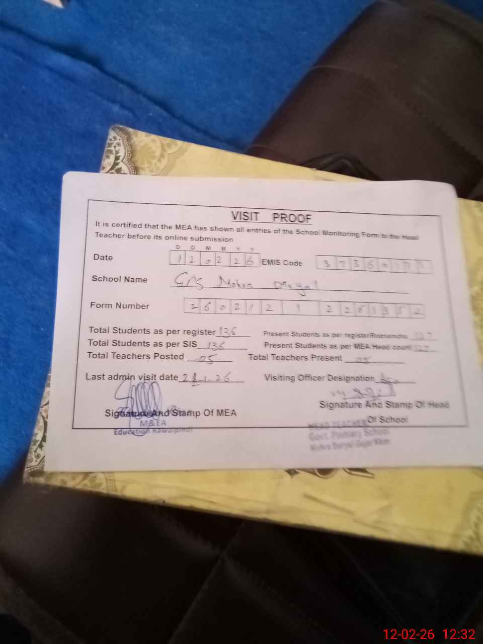 | EMIS Code: 37360171 | Name of School: GPS MOHRA DARYAL | |||