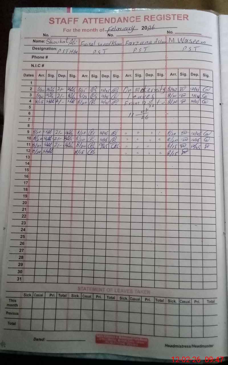 | Name: SH**** AL**** Designation: (School Headmaster's/Headmistress's) PST Phone/Cell Number: 03**** |