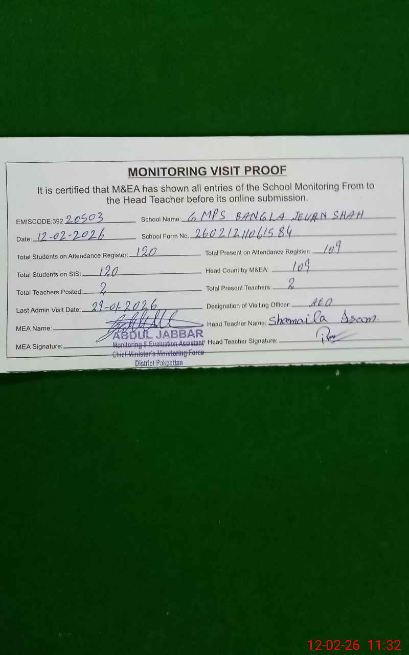 | EMIS Code: 39220503 | Name of School: GMPS BANGLA JEVAN SHAH | |||