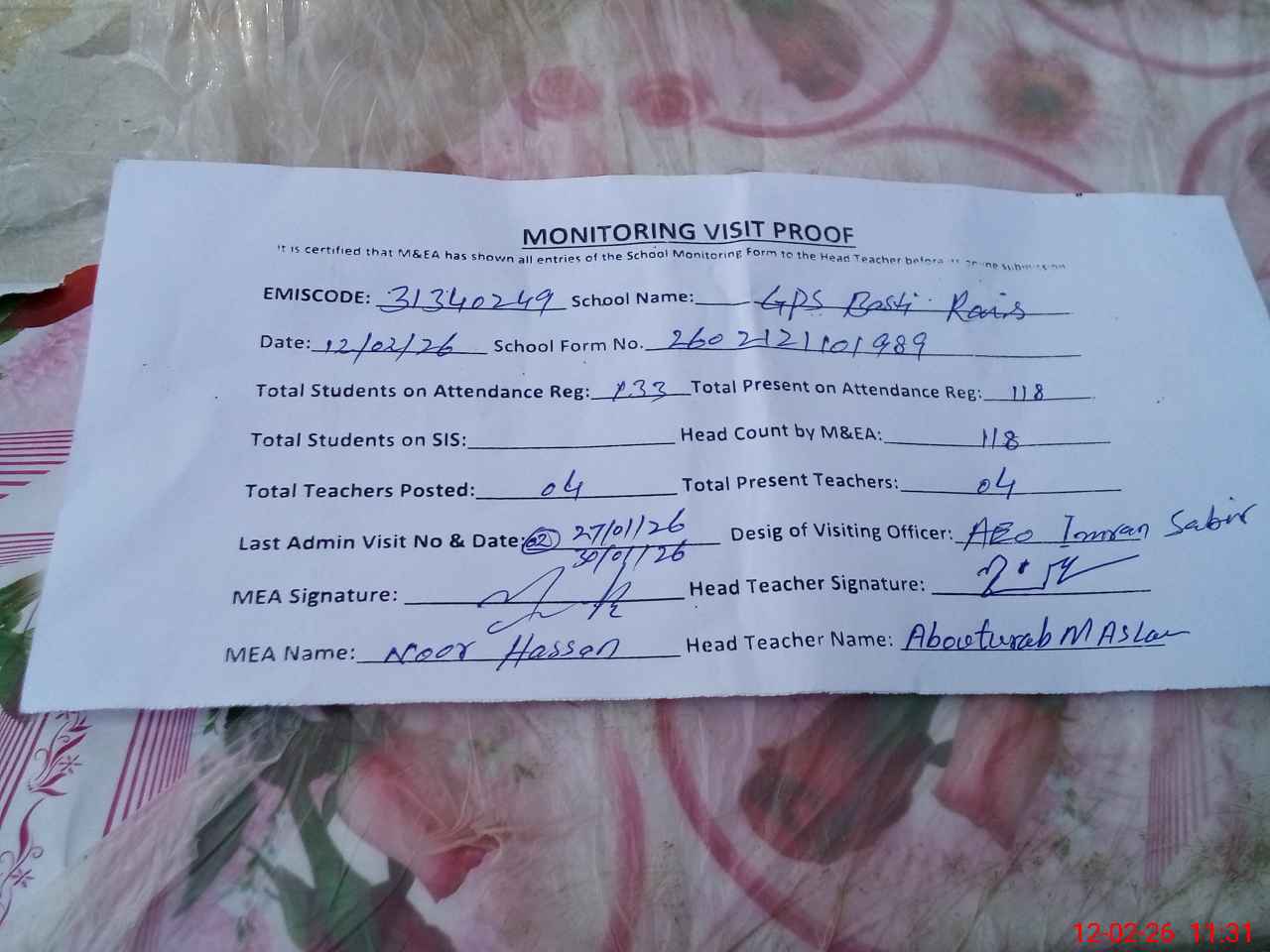 | EMIS Code: 31340249 | Name of School: GPS BASTI RAIS | |||