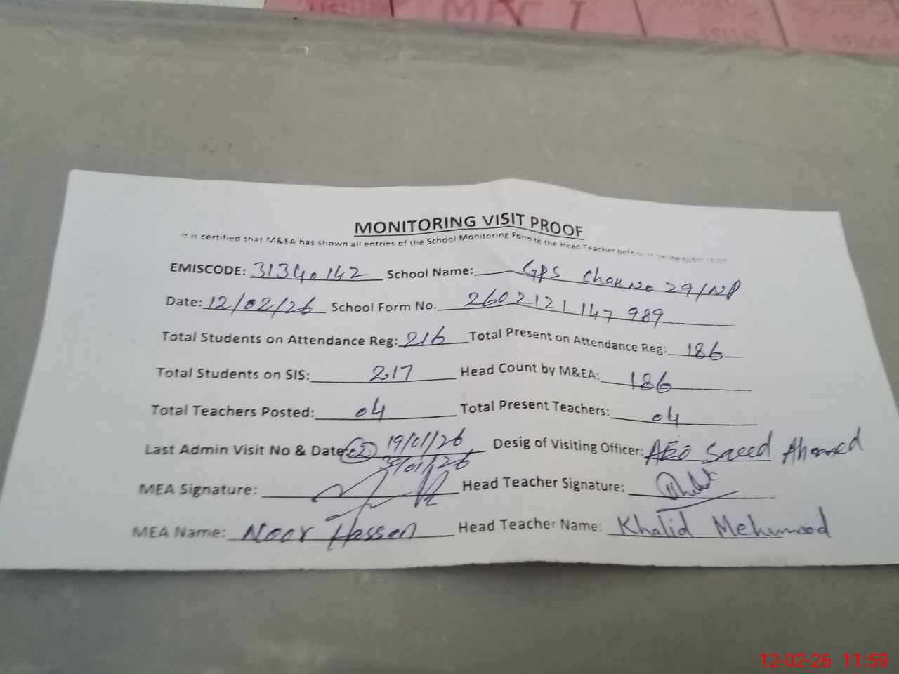 | EMIS Code: 31340142 | Name of School: GPS CHAK NO. 29/NP | |||