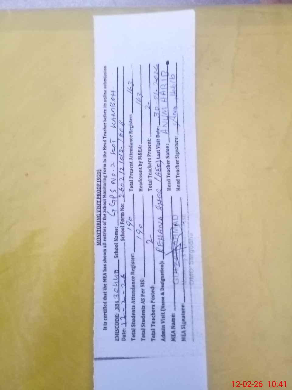 | EMIS Code: 38430440 | Name of School: GGPS NO.2 KOT KAMBOH | |||
