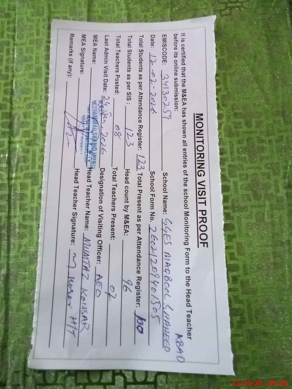 | EMIS Code: 34130259 | Name of School: GGES MAQBOOL SHAHEED ABAD | |||