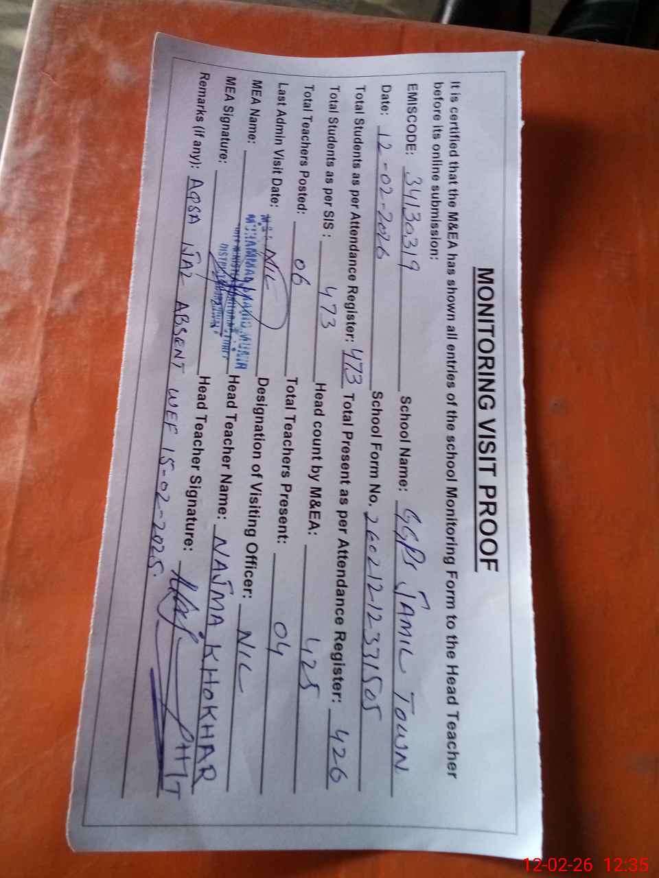 | EMIS Code: 34130319 | Name of School: GGPS JAMIL TOWN | |||