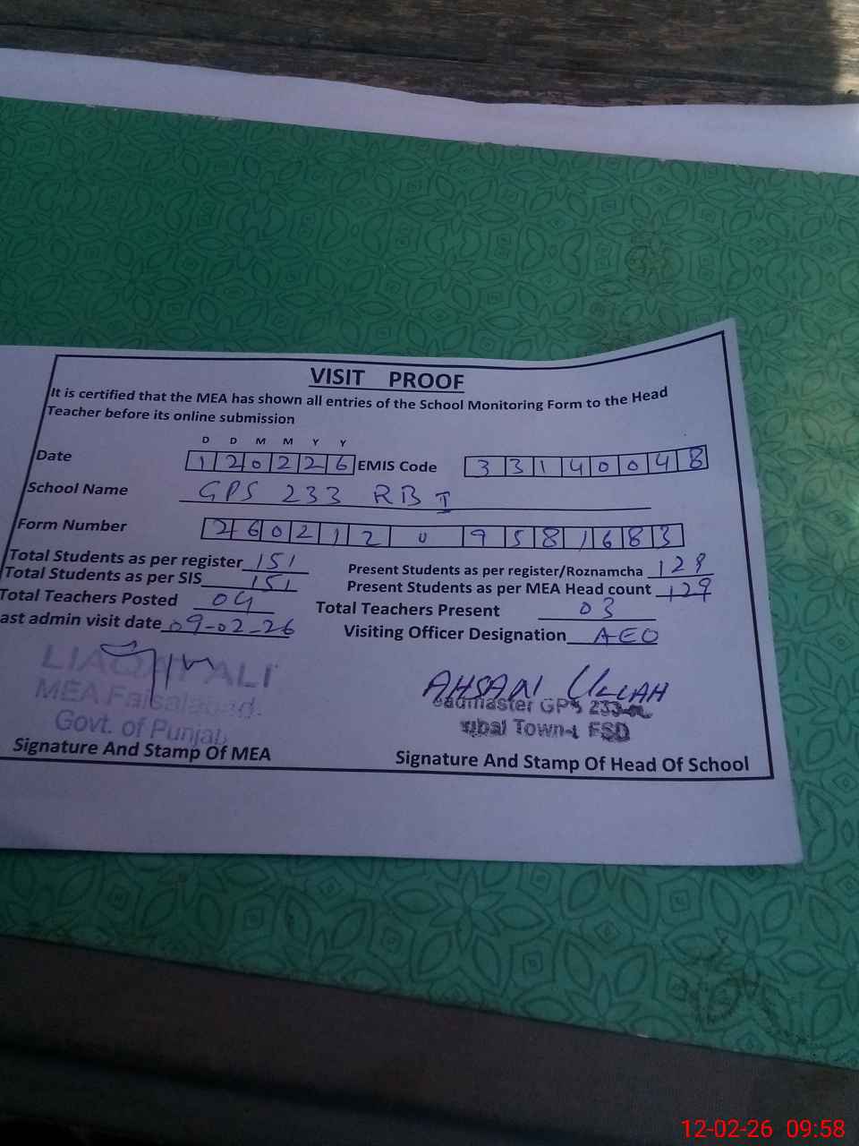 | EMIS Code: 33140048 | Name of School: GPS 233 RB I | |||