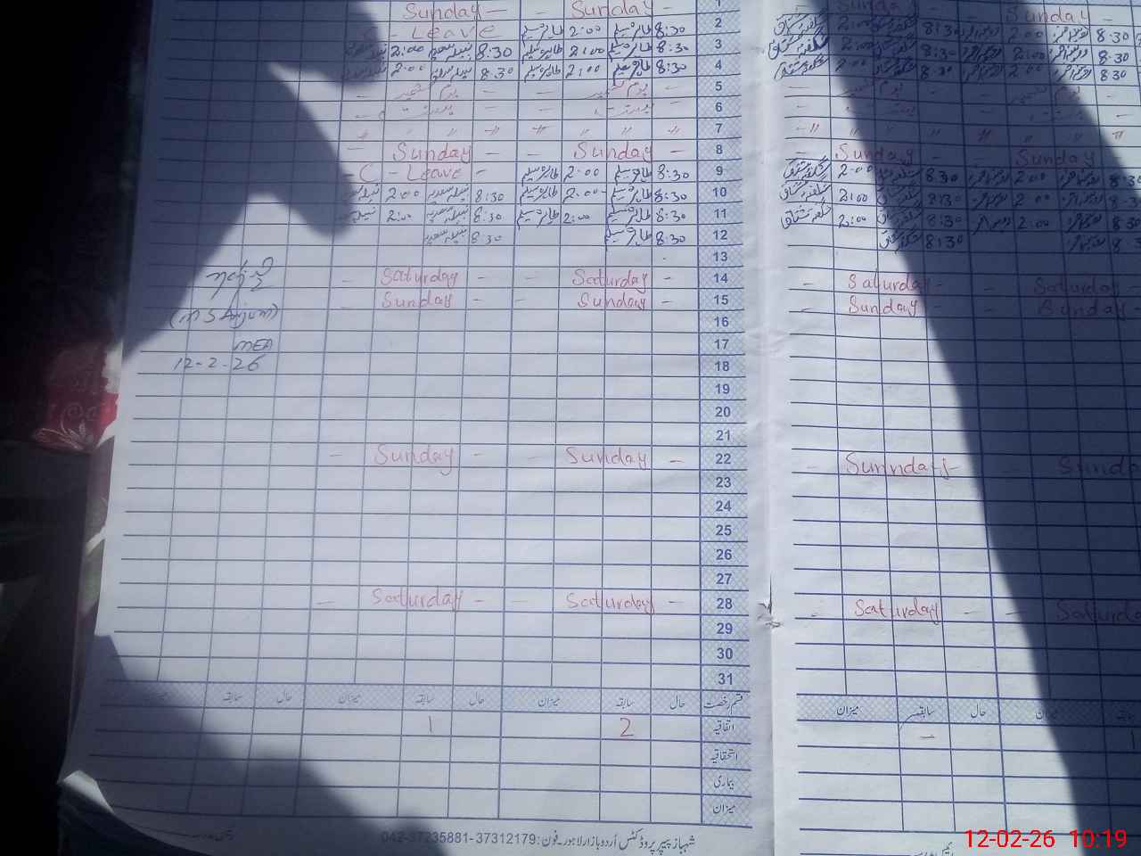 | Leave | Duty | Absent | Maternity | Medical | Ex- Pak |