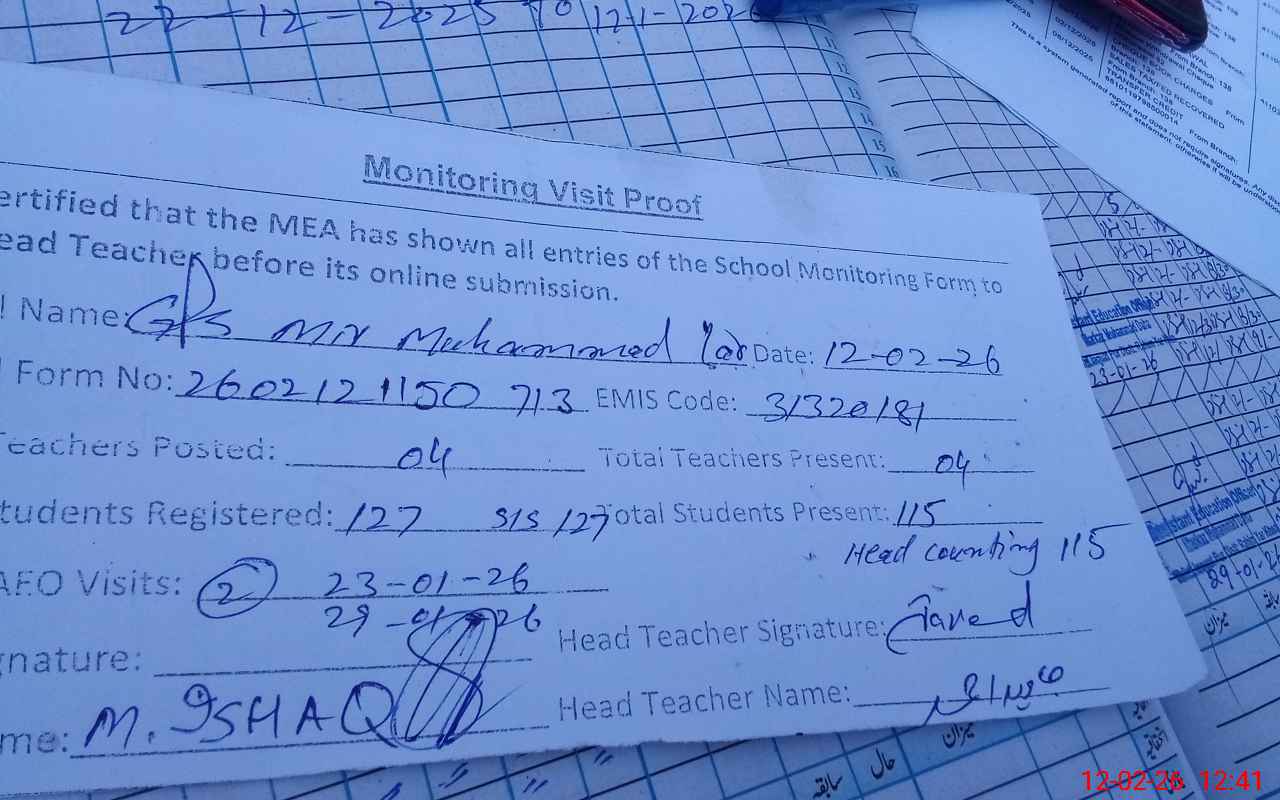 | Attendance Register | Head Teacher | MEA with School | Visit Proof |