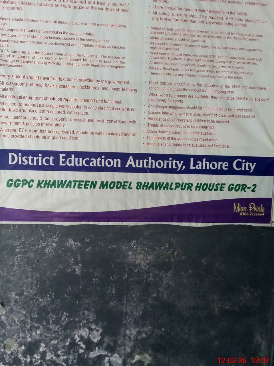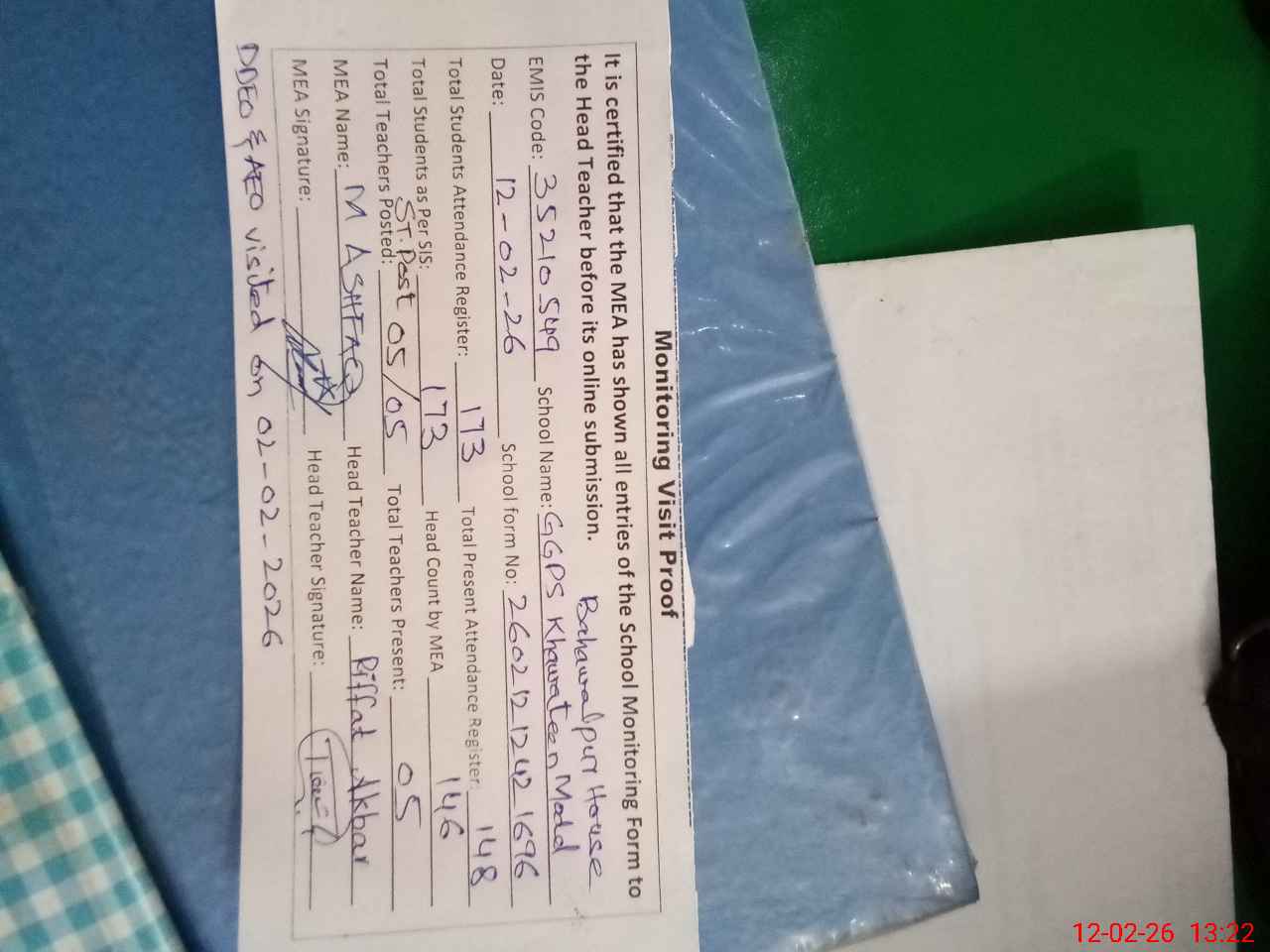 | EMIS Code: 35210549 | Name of School: GGPS KHAWATEEN MODEL BHAWALPUR HOUSE | |||