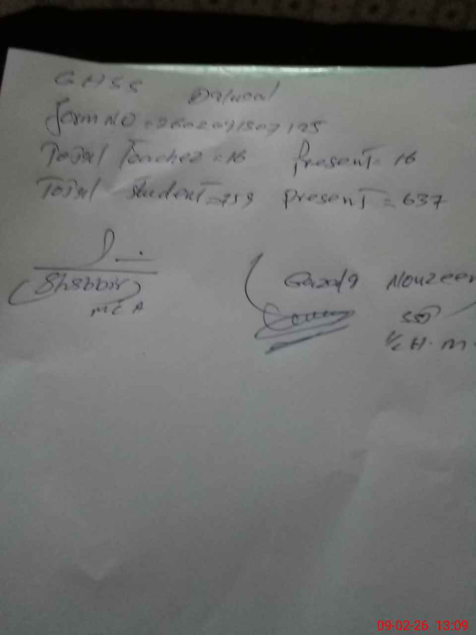 | Name: Gh**** No**** Designation: (School Headmaster's/Headmistress's) I/C Principal Phone/Cell Number: 03**** |