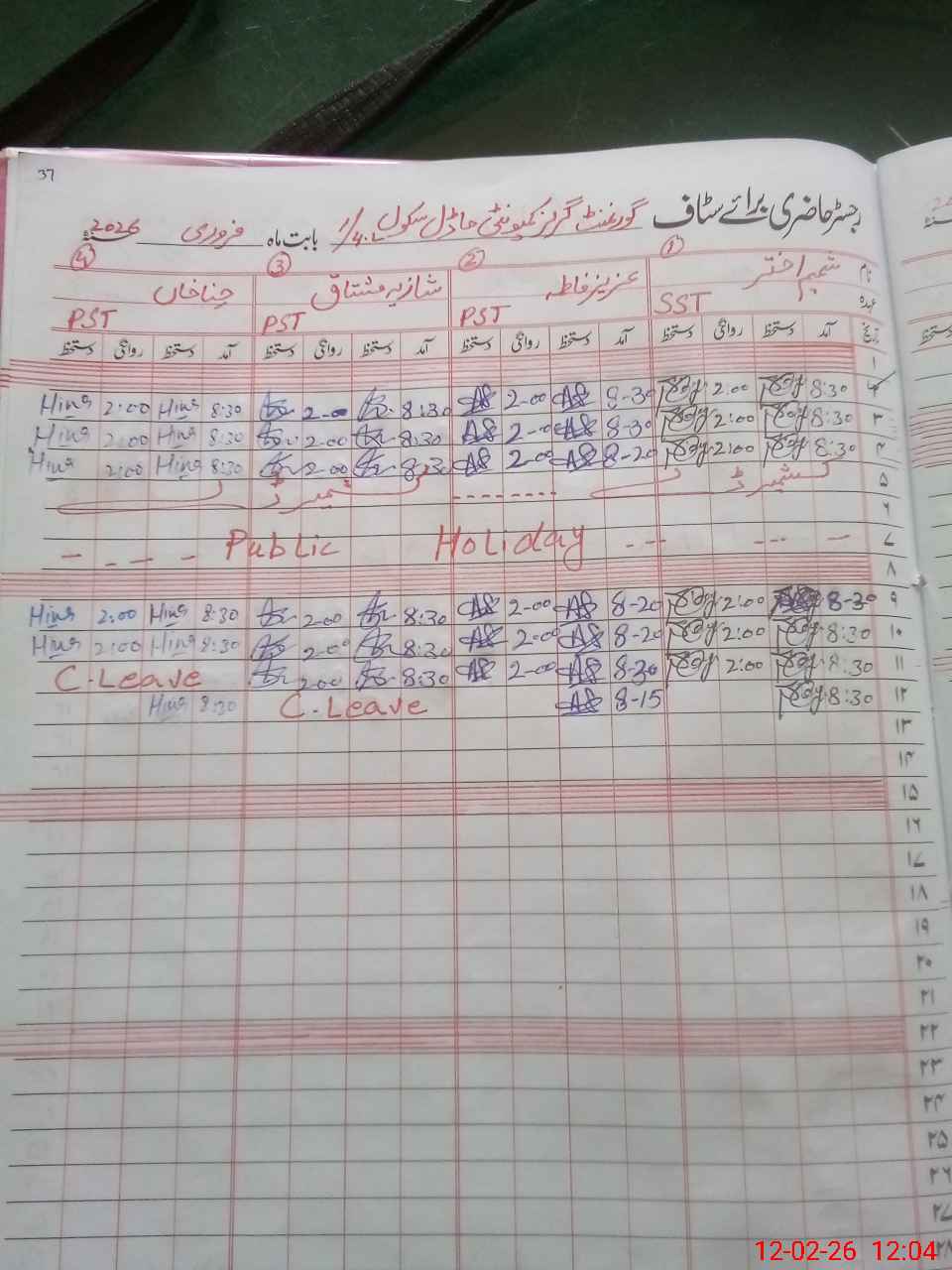 | CNIC | Full Name | Designation | R/C | Absence During Last Calender Month |