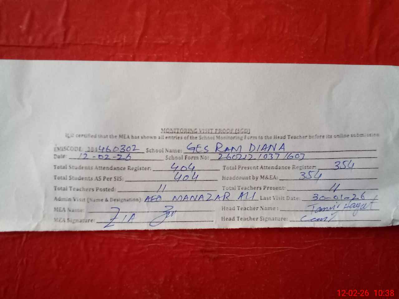 | EMIS Code: 38460302 | Name of School: GES RAM DIANA | |||