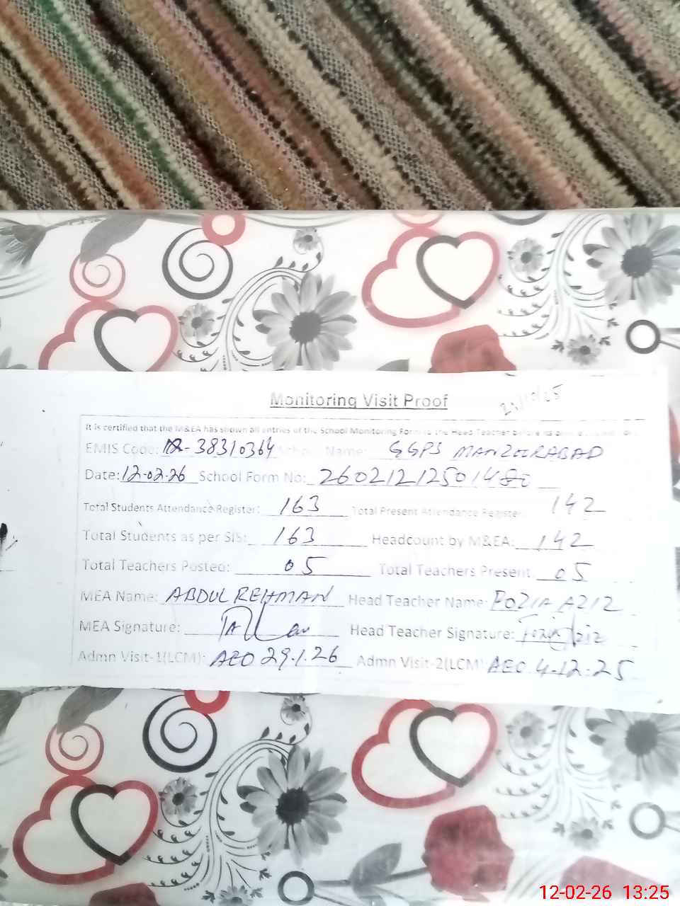 | EMIS Code: 38310364 | Name of School: GGPS MANZOOR ABAD KAMAR MUSHANI | |||