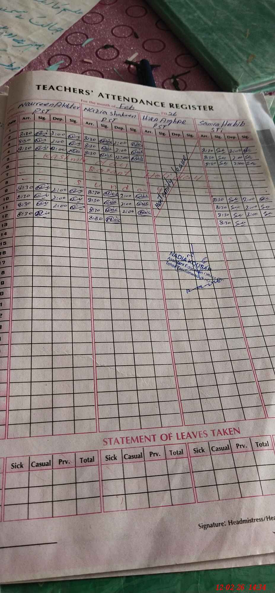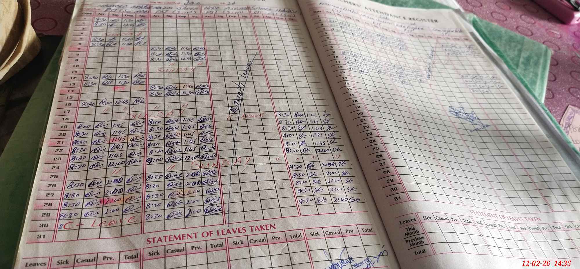 | 33**** | Hi**** As**** | PST Science/Maths | Regular | 0 | 0 | 0 | 0 | 0 | 0 | 0 | 0 | 0 | Maternity |