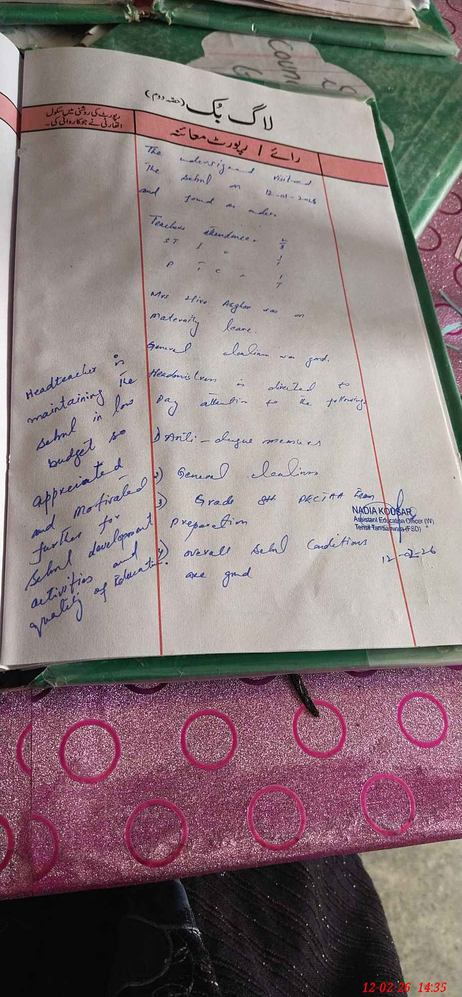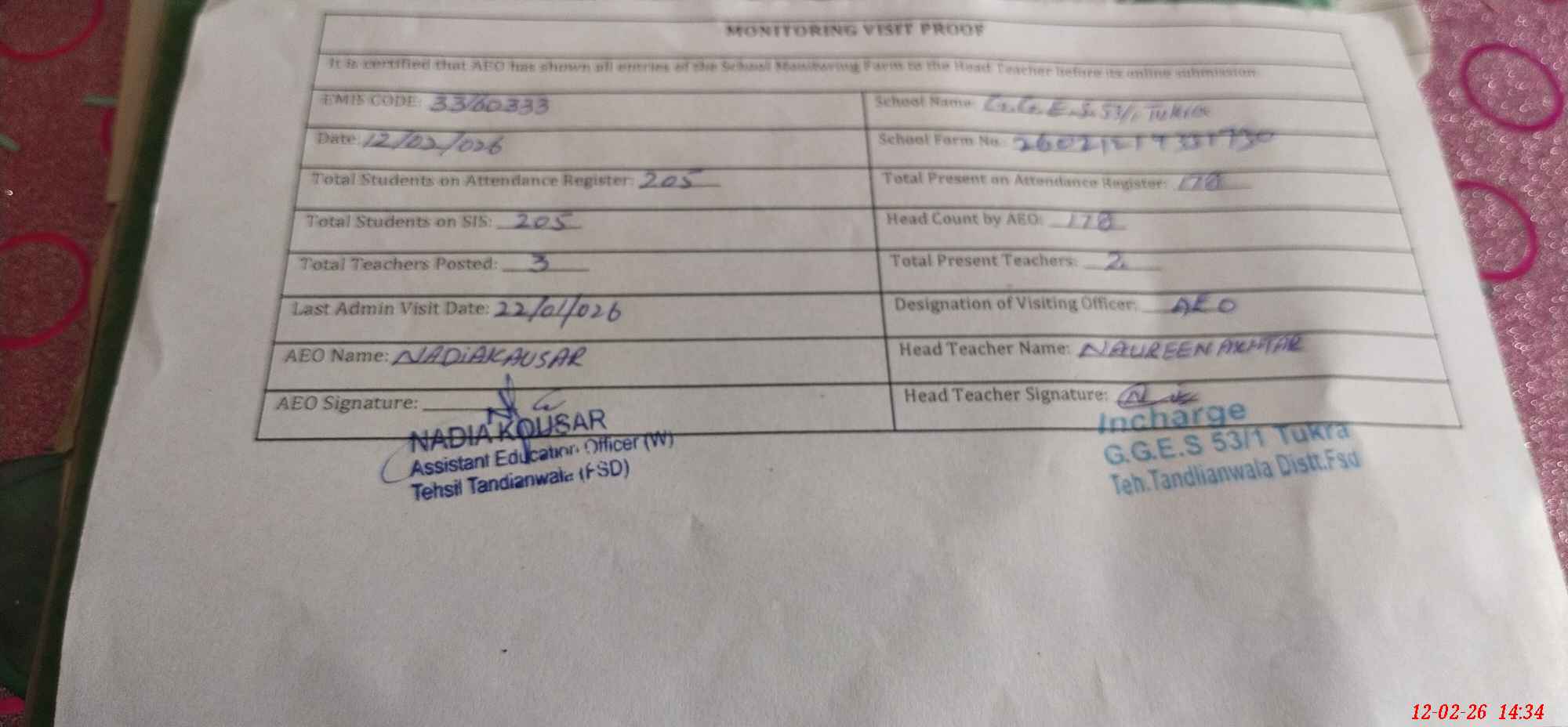 | Certified that this School was Inspected by the Undersigned MEA/DMO Today and the Information Stated Above is as Per Record. | |||||