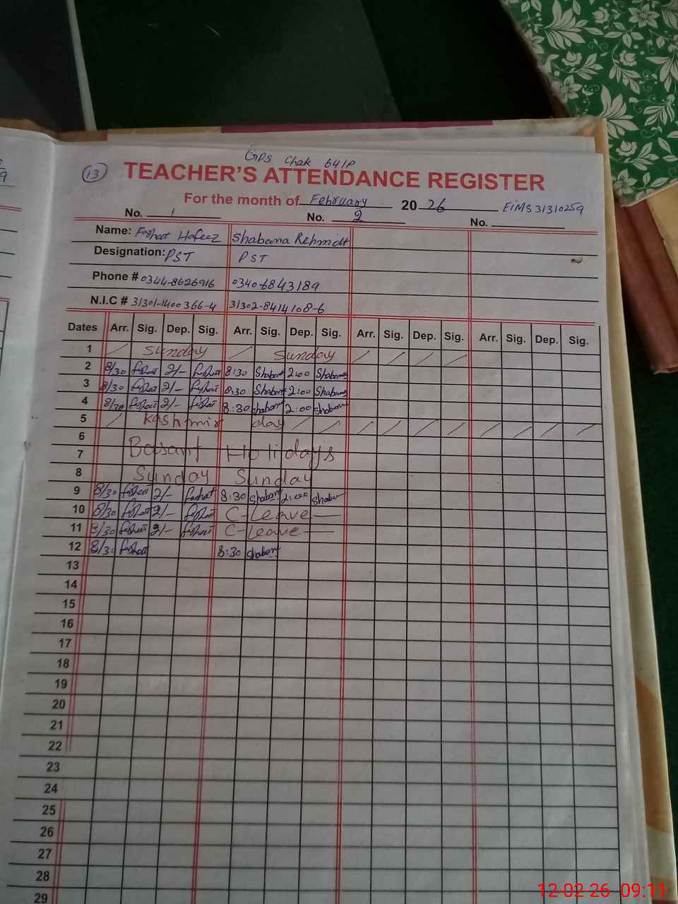| Name: Fa**** Ha**** Designation: (School Headmaster's/Headmistress's) PST Phone/Cell Number: 03**** |