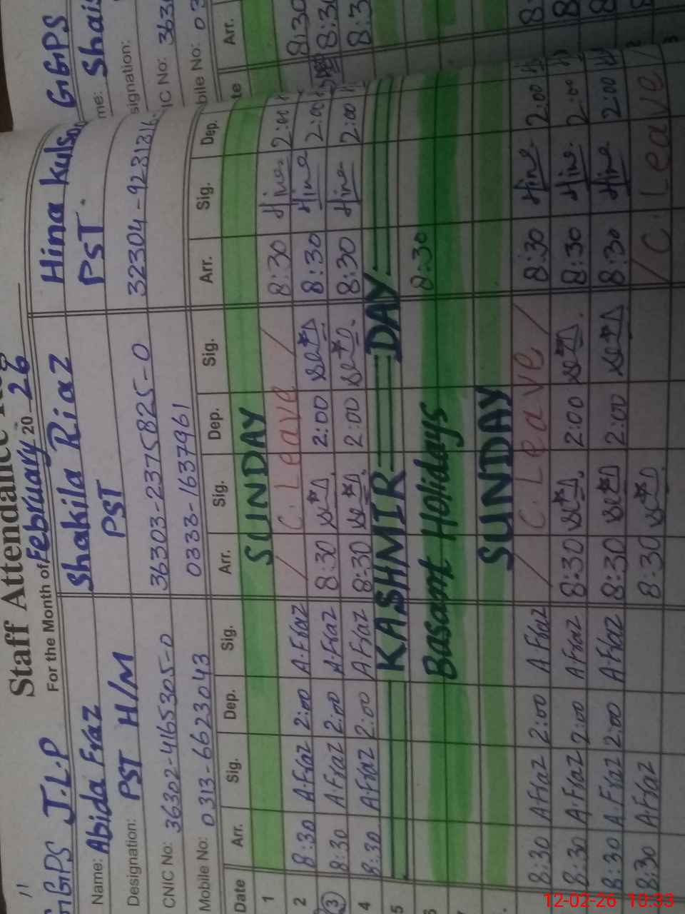 | Name: AB**** FR**** Designation: (School Headmaster's/Headmistress's) HEADMASTER Phone/Cell Number: 03**** |