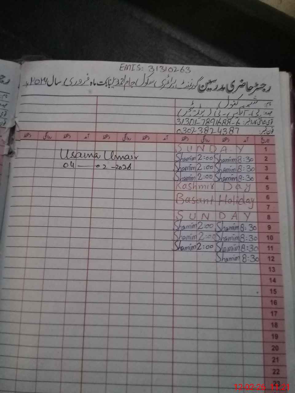 | Name: NA**** AH**** Designation: (School Headmaster's/Headmistress's) PST Phone/Cell Number: 03**** |