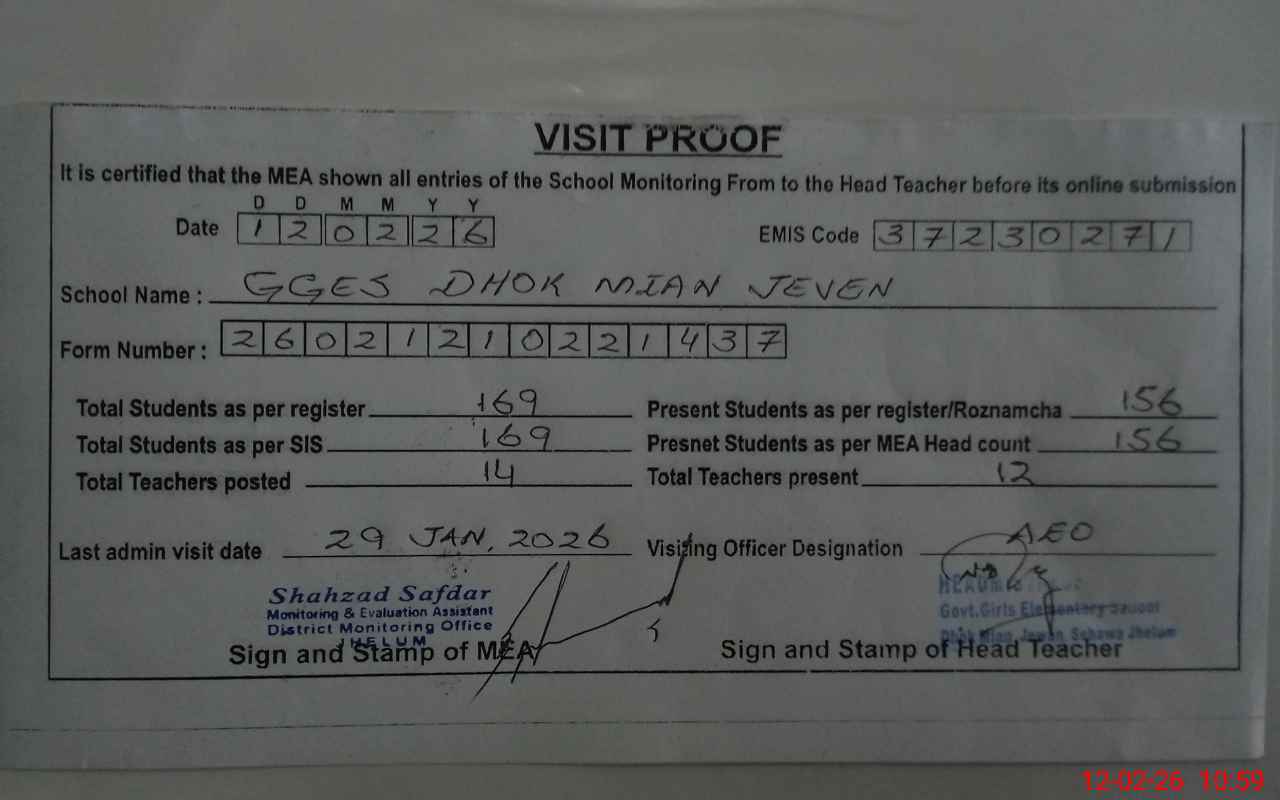 | EMIS Code: 37230271 | Name of School: GGES DHOK MIAN JEVEN | |||
