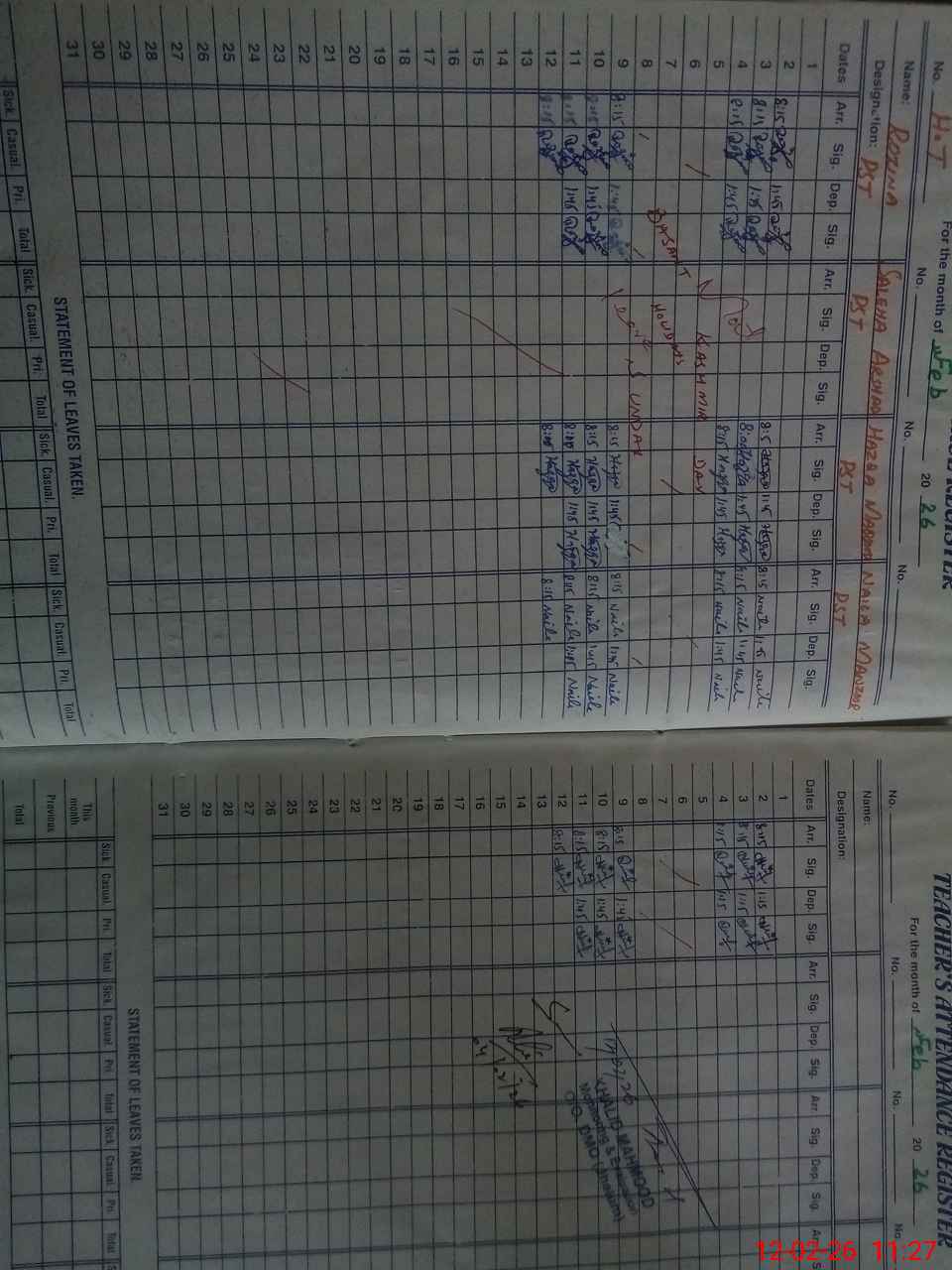 | 37**** | Sa**** Ar**** | PST Science/Maths | Regular | 3 | 0 | 0 | 3 | 0 | 0 | 0 | 0 | 0 | Maternity |