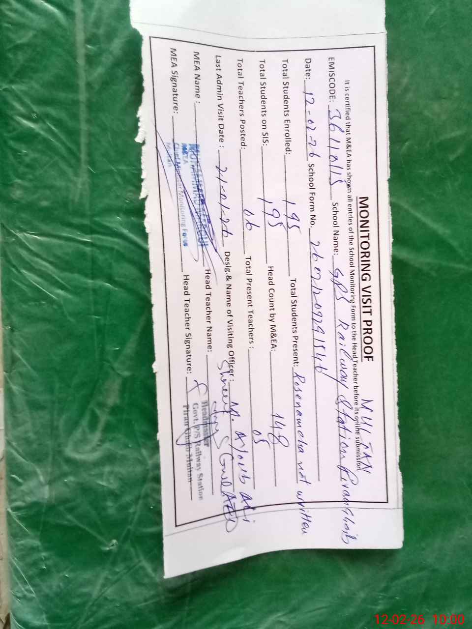| Monitoring Date: 12-02-2026 | Start Time: 12-02-2026 09:29 AM | End Time: 12-02-2026 10:00 AM | Name of MEA: Mu**** Ma**** | |
