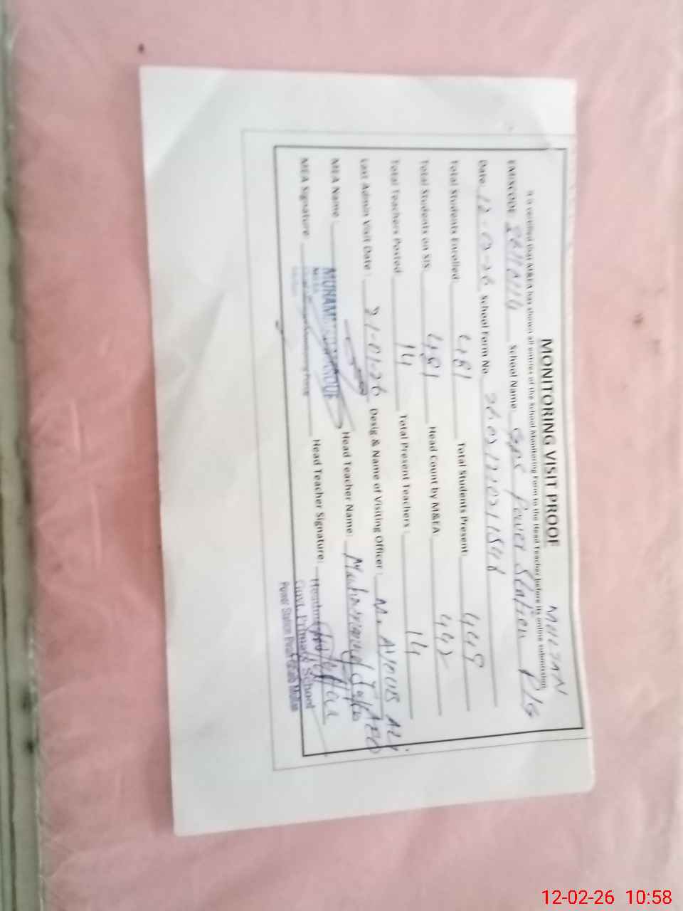 | Certified that this School was Inspected by the Undersigned MEA/DMO Today and the Information Stated Above is as Per Record. | |||||