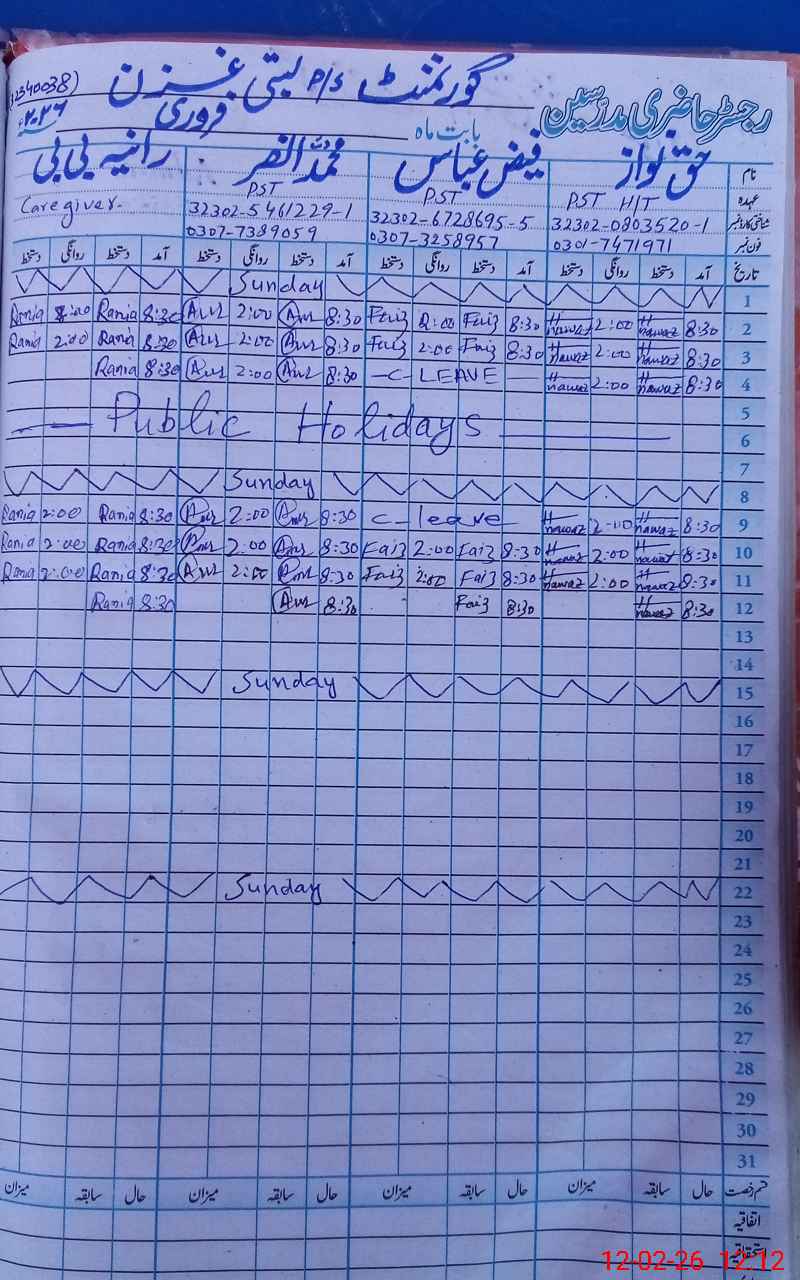 | CNIC | Full Name | Designation | R/C | Absence During Last Calender Month |