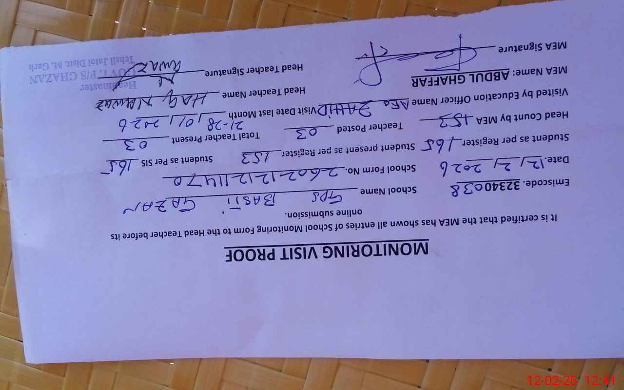 | EMIS Code: 32340038 | Name of School: GPS BASTI GHAZAN | |||