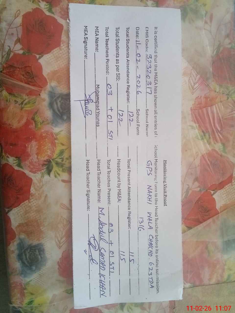| EMIS Code: 32320317 | Name of School: GPS NAKHI WALA (CHAK NO. 623/TDA) | |||