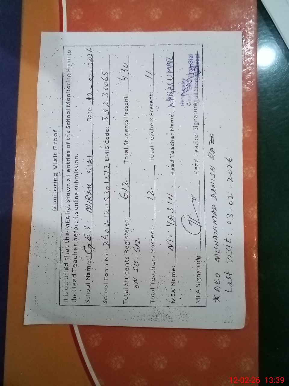 | EMIS Code: 33230065 | Name of School: GES MIRAK SIAL | |||