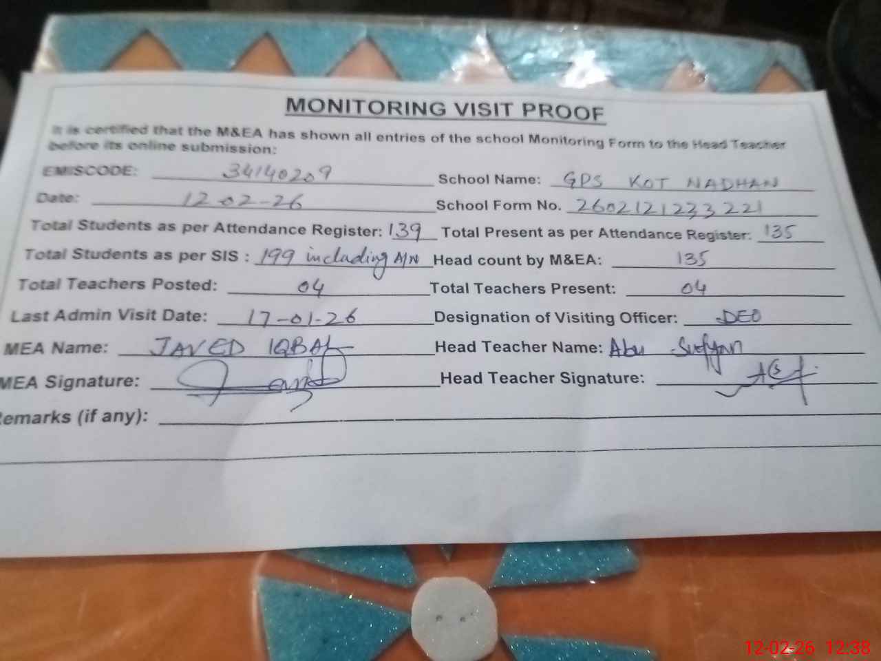 | EMIS Code: 34140209 | Name of School: GPS KOT NADHAN | |||
