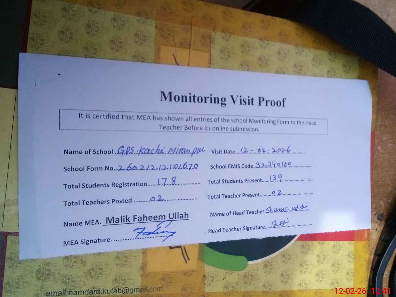 | EMIS Code: 32340100 | Name of School: GPS KACHI MIRAN PUR | |||