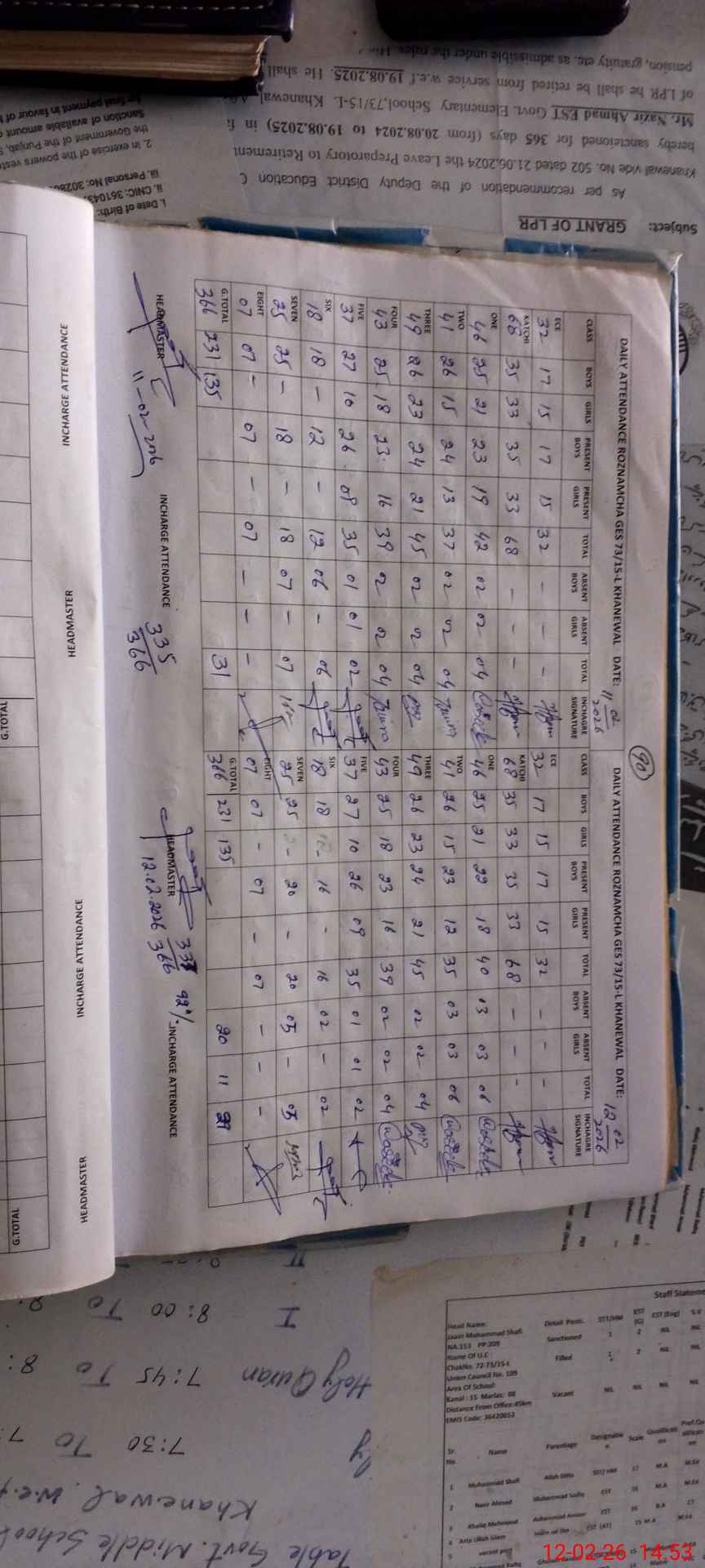 | EMIS Code: 36420653 | Name of School: GES 73/15-L KHANEWAL | |||