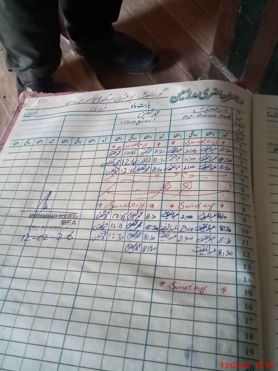| Attendance Register | Head Teacher | MEA with School | Visit Proof |