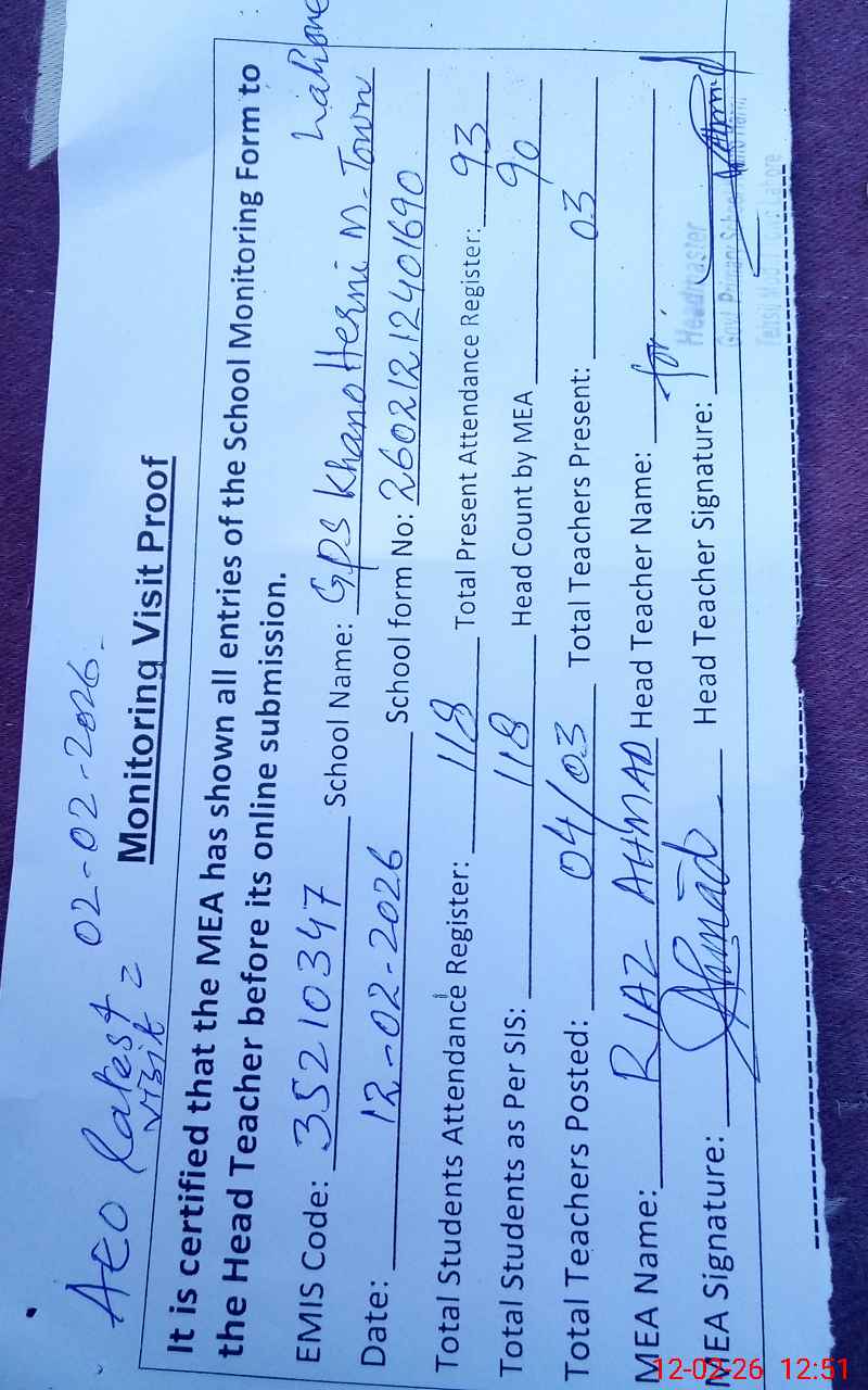 | EMIS Code: 35210347 | Name of School: GPS KHANO HARNI | |||