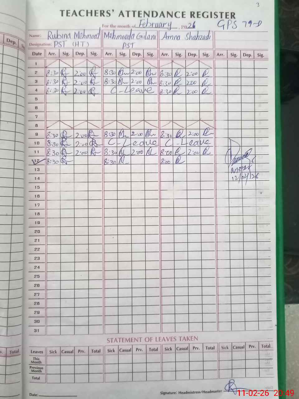 | Attendance Register | Head Teacher | MEA with School | Visit Proof |