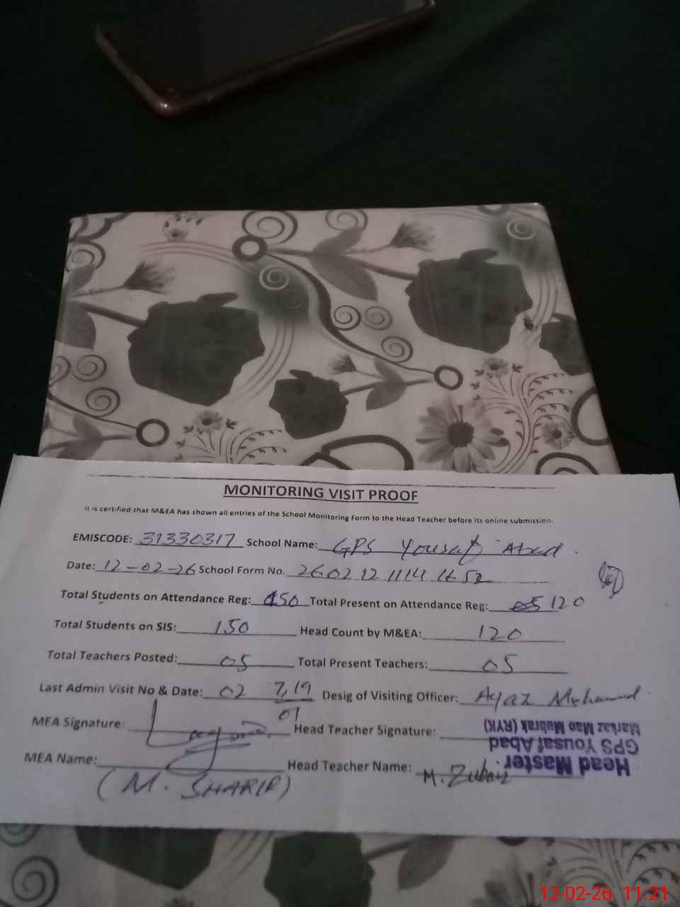 | EMIS Code: 31330317 | Name of School: GPS YOUSAF ABAD | |||