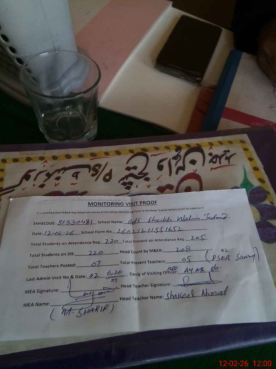 | EMIS Code: 31330481 | Name of School: GPS SHEIKH WAHIN JADEED | |||