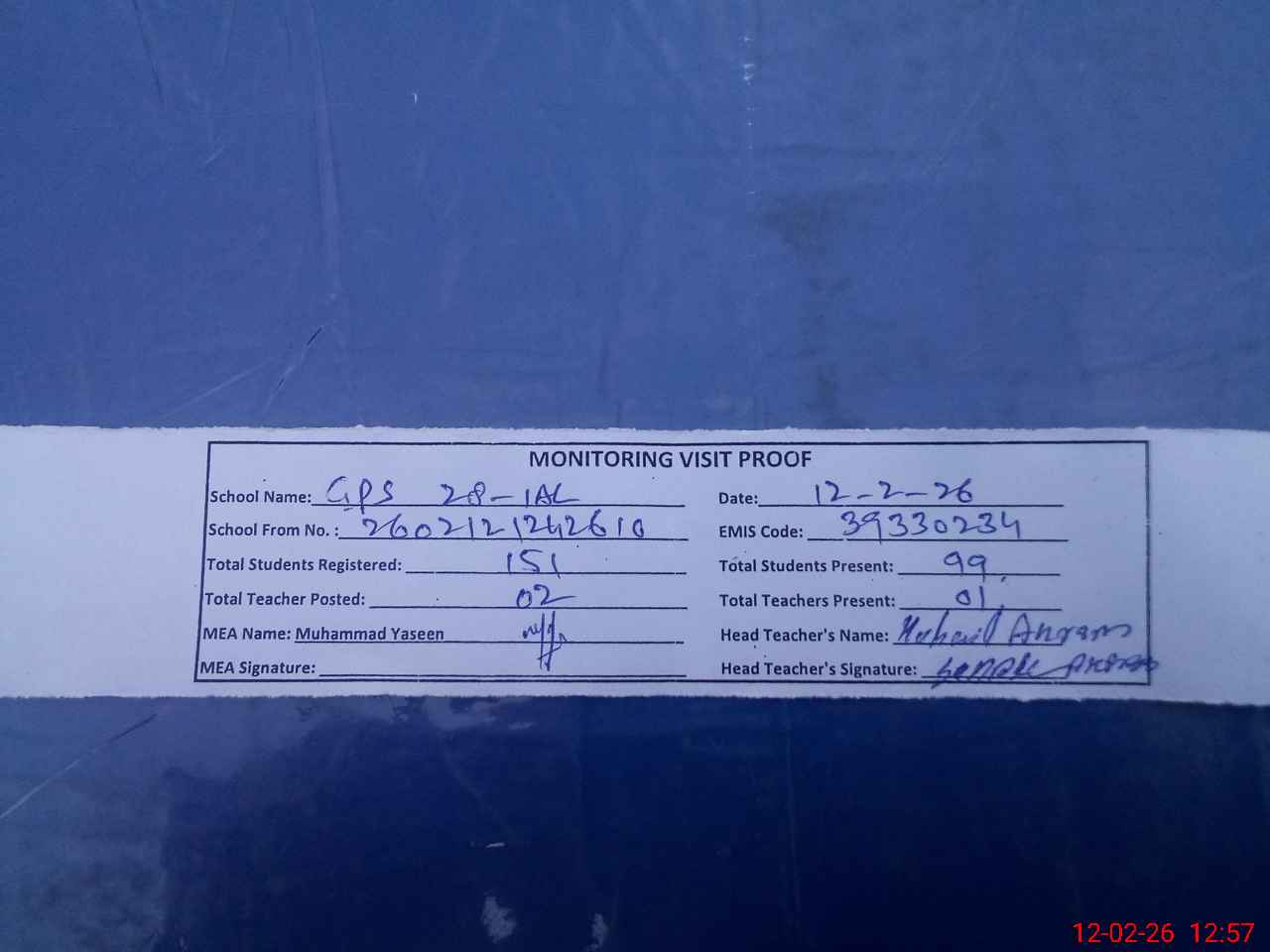| EMIS Code: 39330234 | Name of School: GPS CHAK 28/1-AL | |||