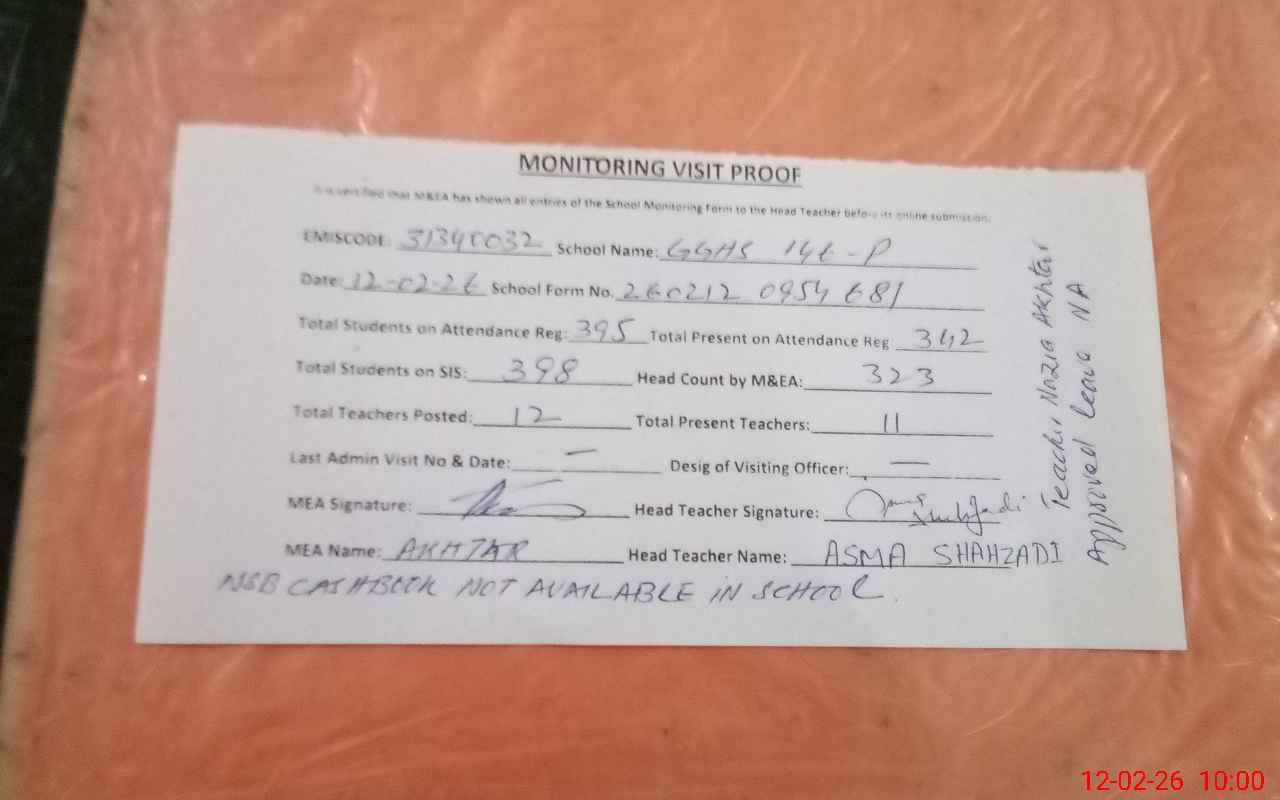 | EMIS Code: 31340032 | Name of School: GGHS CHAK NO. 146/P | |||