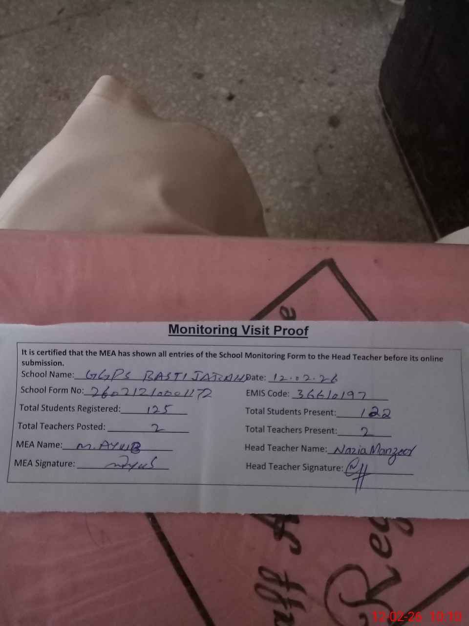 | EMIS Code: 36610197 | Name of School: GGPS BASTI JARAHI | |||