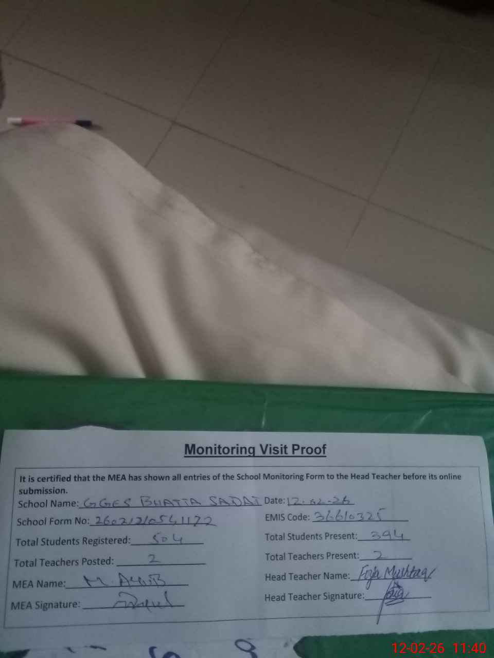 | EMIS Code: 36610325 | Name of School: GGES BHUTTA SADAAT | |||