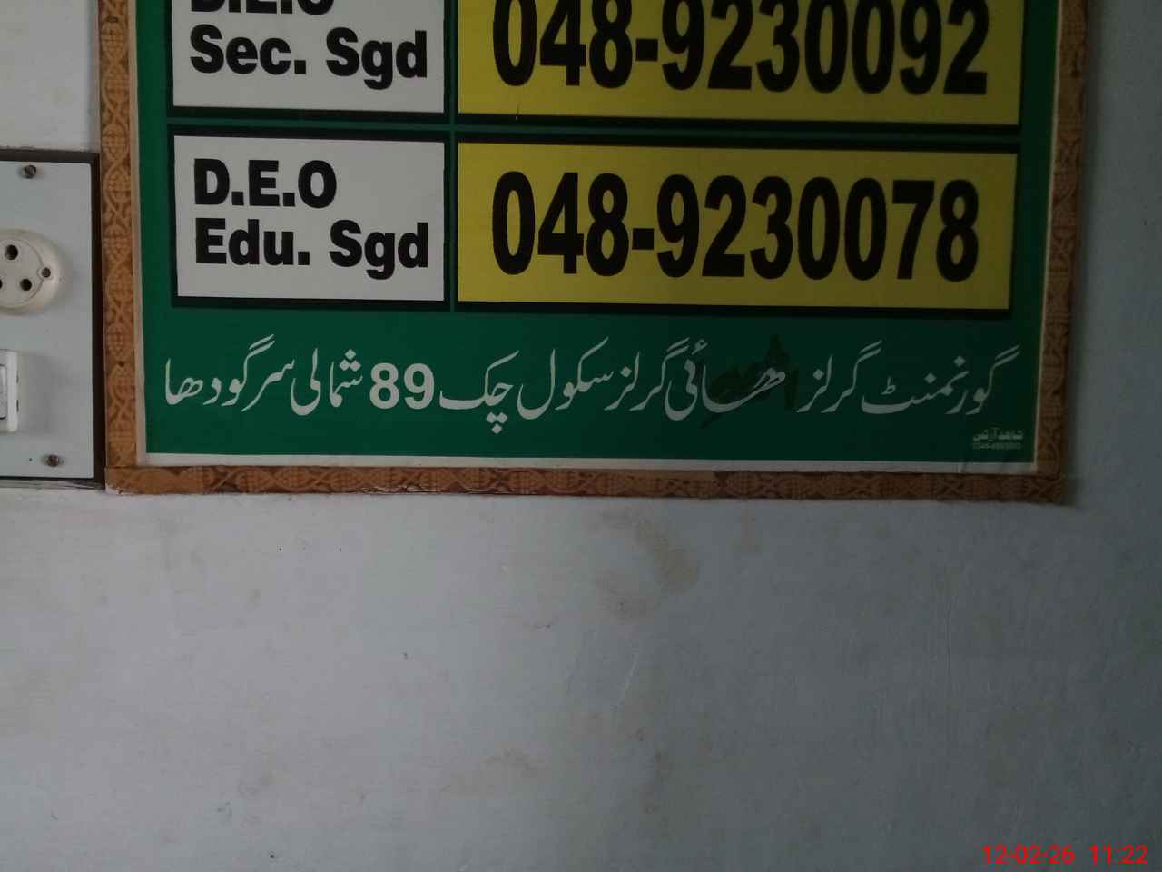 | EMIS Code: 38420626 | Name of School: GGHS CHAK NO.89 NB | |||