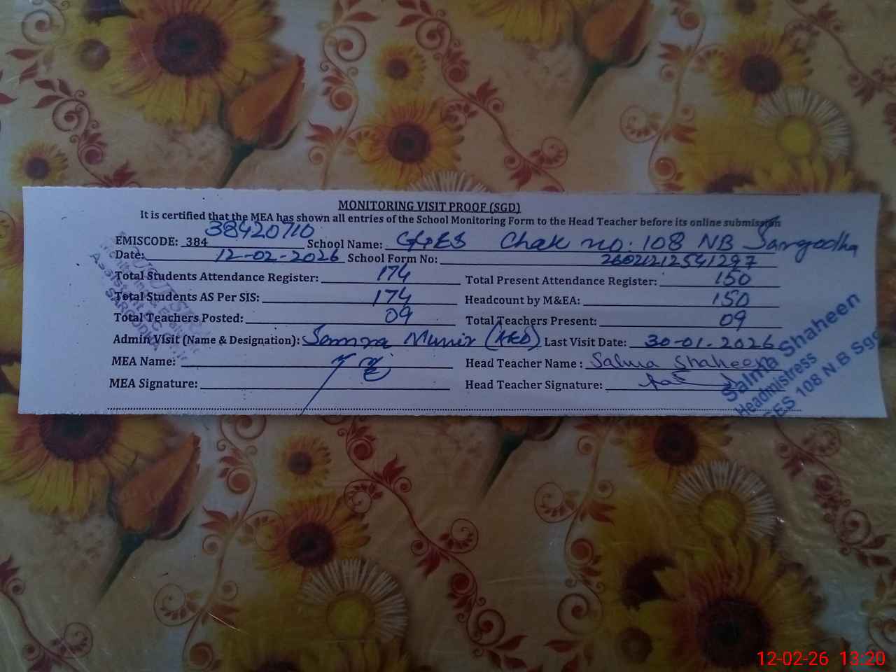 | EMIS Code: 38420710 | Name of School: GGES CHAK NO.108 NB | |||