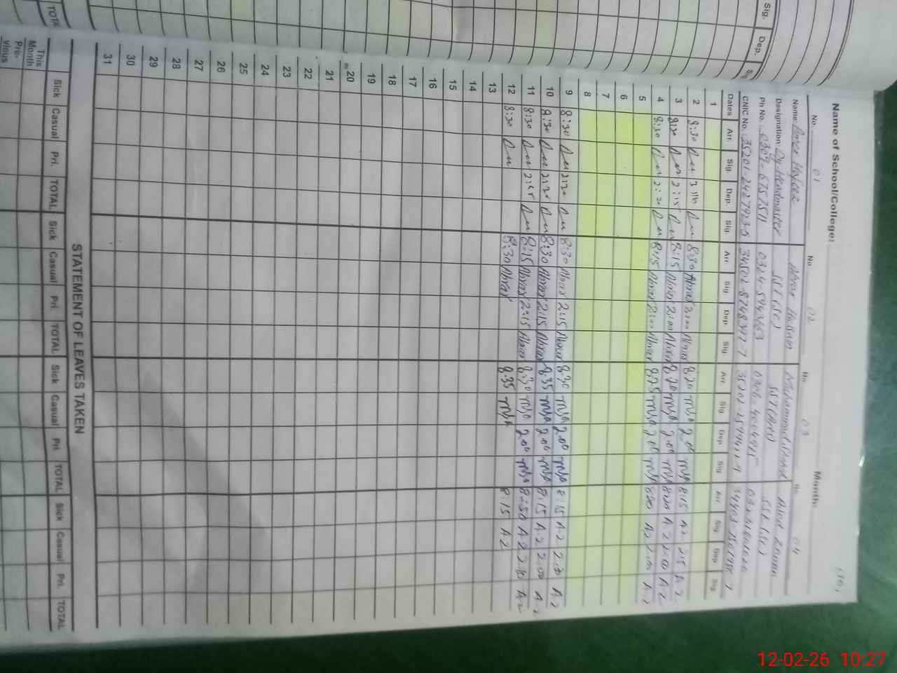 | CNIC | Full Name | Designation | R/C | Absence During Last Calender Month |